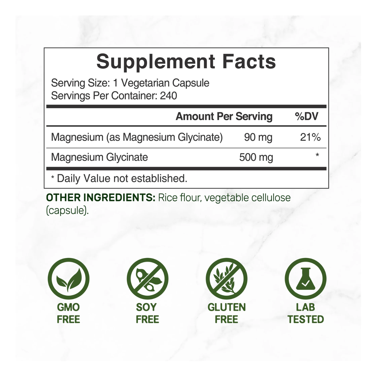 Supplement Magnesium Glycinate 500mg 240 Veggie Capsules Price in Bangladesh or BD