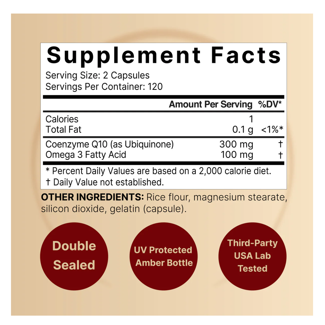 NatureBell CoQ10 Ubiquinone 300mg with Omega-3 Fatty Acids 240 Capsules