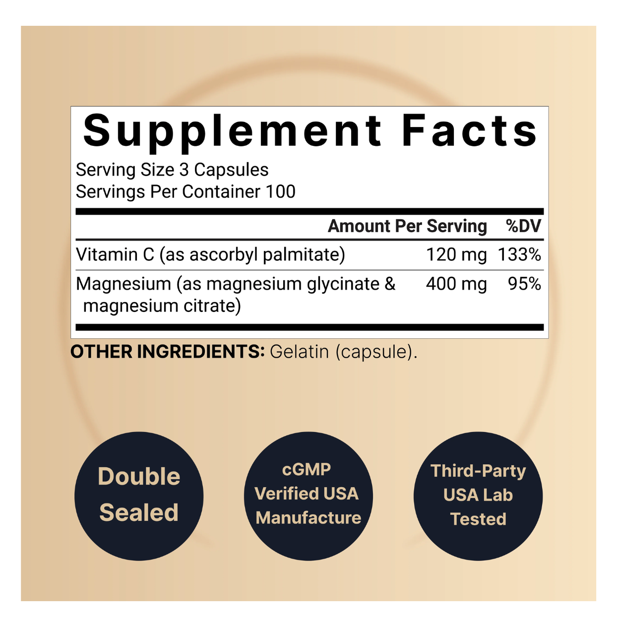 Naturebell Magnesium Complex 400mg with Fat Soluble Vitamin C 300 Capsules