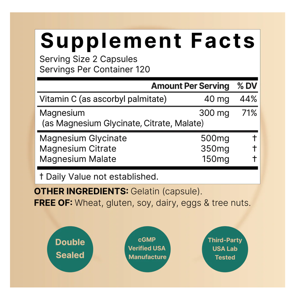 NatureBell Magnesium Glycinate + Citrate + Malate Triple Complex 240 Capsules