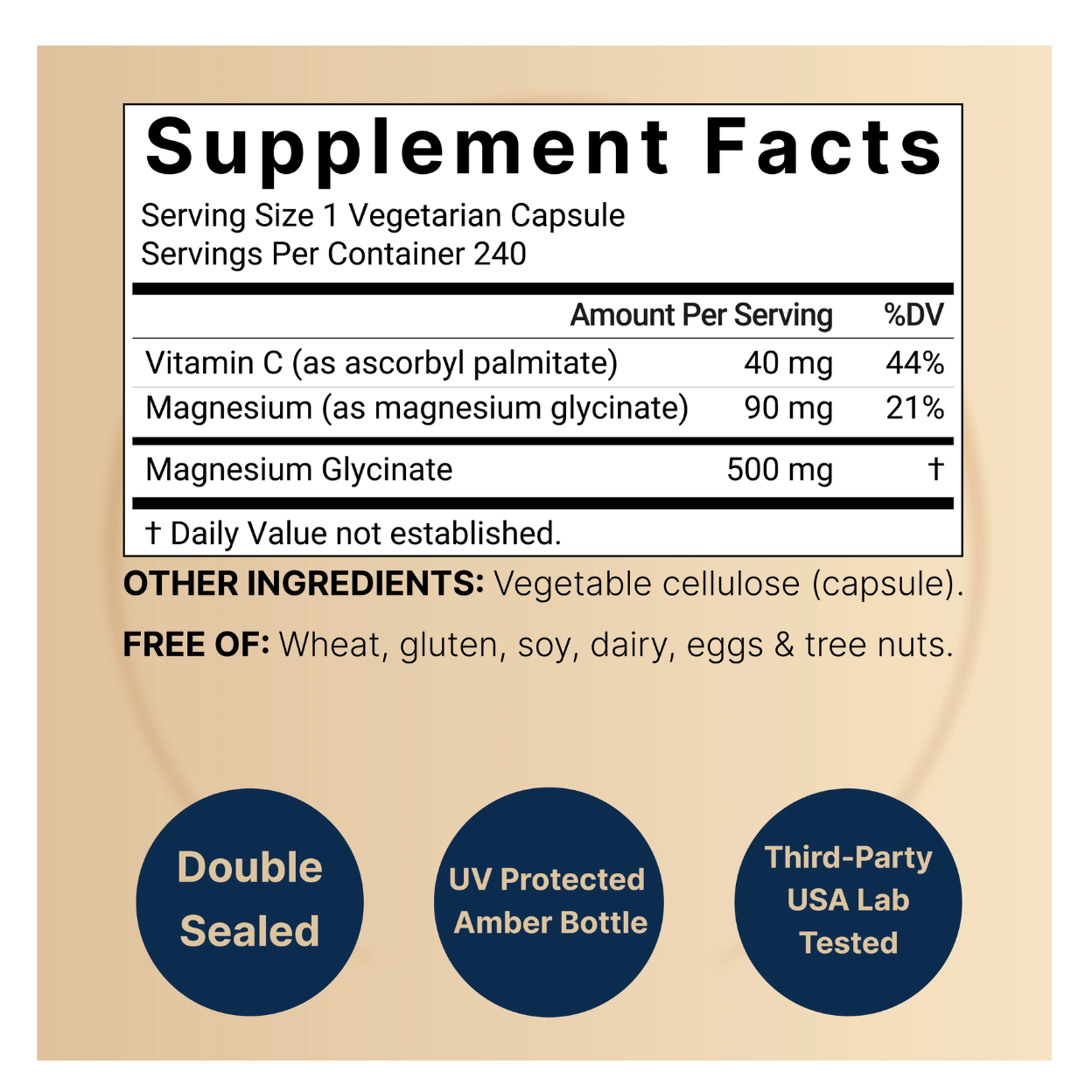 NatureBell Pure Magnesium Glycinate 500mg 240 Vegetarian Capsules