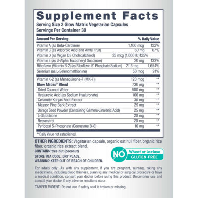 Neocell Glow Matrix Advanced Skin Hydrator, 90 Vegetarian Capsules, Ultimate Ceramides, Hyaluronic Acid, and Coconut Water. Your skin’s daily hydration is powered from within. NeoCell® Glow Matrix® blends Hyaluronic Acid, Ceramides, and Coconut Water to deliver ultimate hydration and support skin moisture, elasticity, and absorption. From the #1 Beauty Supplement Brand, it’s your glow routine – upgraded.