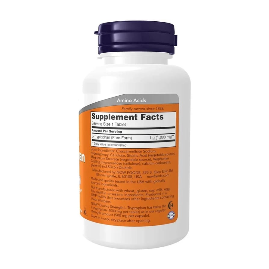 NOW L-Tryptophan is a natural supplement that helps you sleep better, stay calm, and feel happier. It contains 1000mg pure L-Tryptophan which is an essential amino acid your body needs to make serotonin—a chemical that helps improve your mood and sleep.