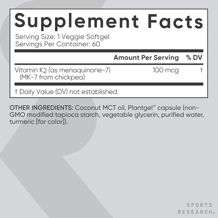 Sports Research Vitamin K2 MK7 100mcg 60 Softjells - Image 2